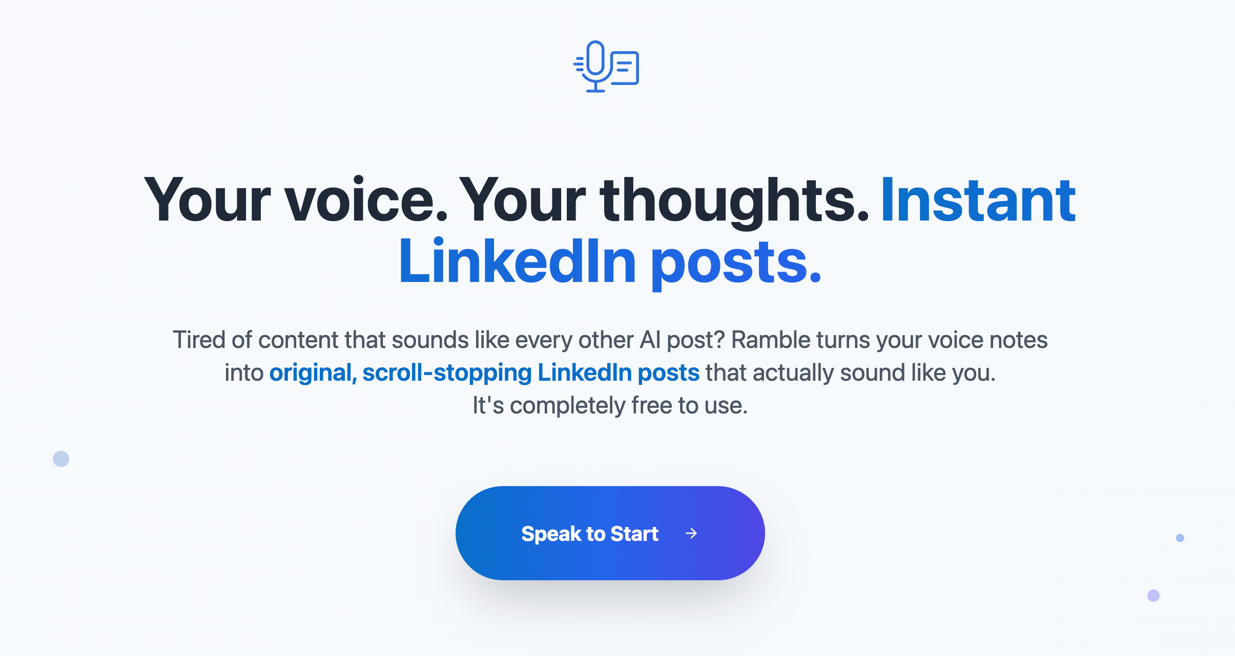 Ramble是一款语音转文本工具,能够快速将用户的语音转换为吸引眼球的LinkedIn帖子,提供多种语气选择和个性化提示。