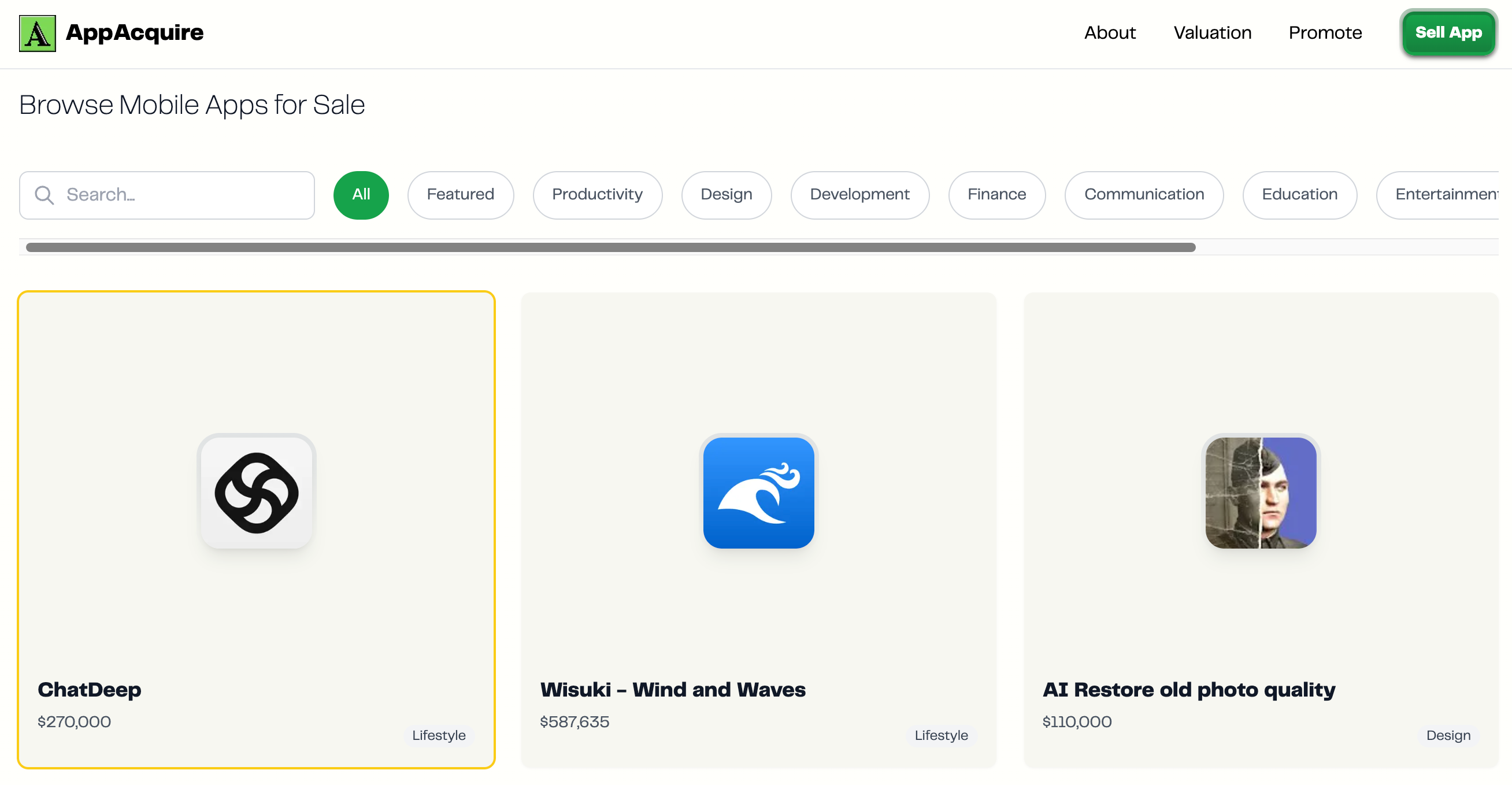 AppAcquire是一款移动应用和SaaS产品交易市场,提供关键指标展示、分类浏览和高质量审核,旨在帮助创始人出售应用和买家寻找优质产品。