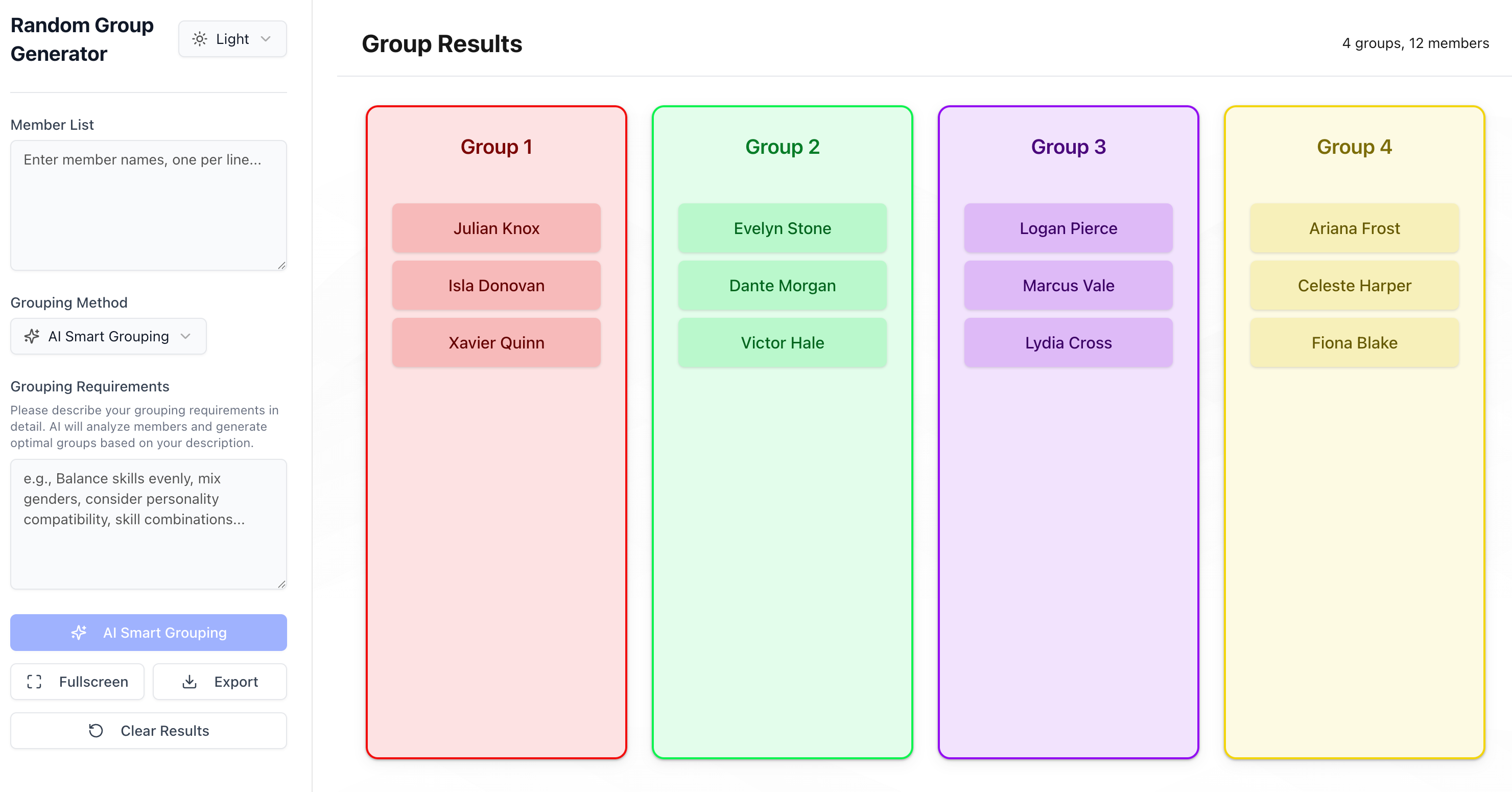 Random Group Generator是一款AI驱动的团队分组工具,通过自然语言处理和自定义约束,快速创建平衡的团队,适用于课堂活动、节日聚会等场合。