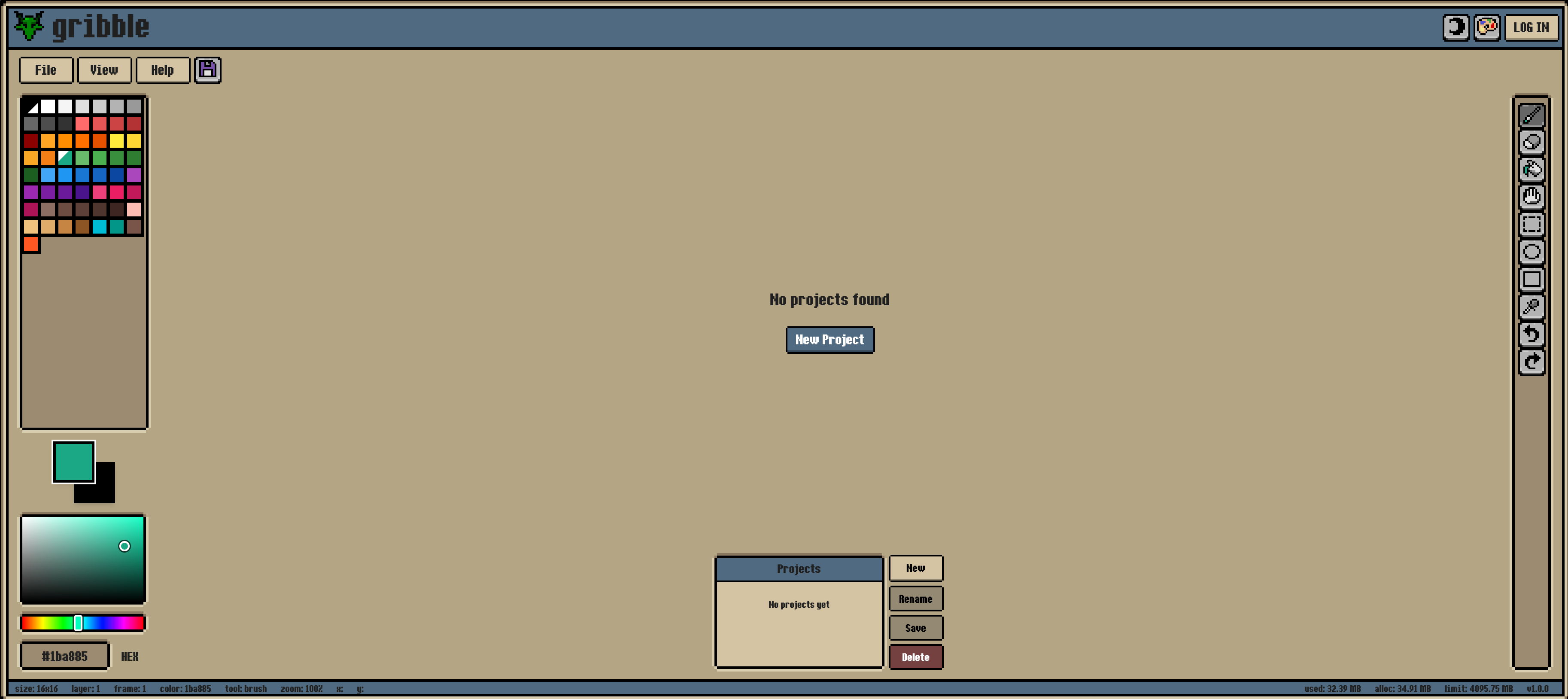 Gribble是一款像素艺术编辑器,支持图层、帧、动画、云存储等功能,并可将作品导出为图像、GIF或CSS/HTML/JavaScript。