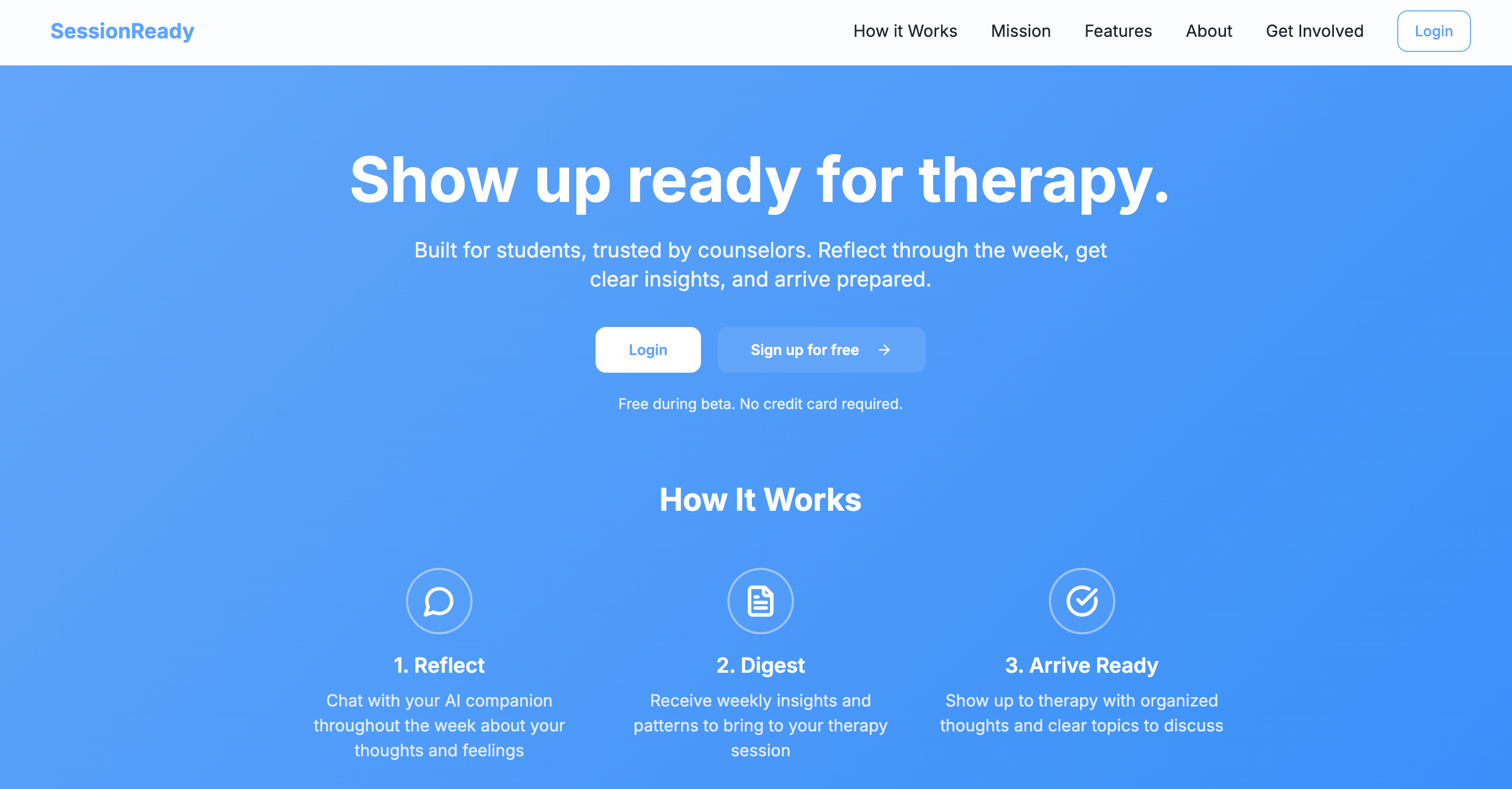 SessionReady是一款心理健康辅助应用,通过自由对话和引导式模式帮助用户更好地利用治疗课程。