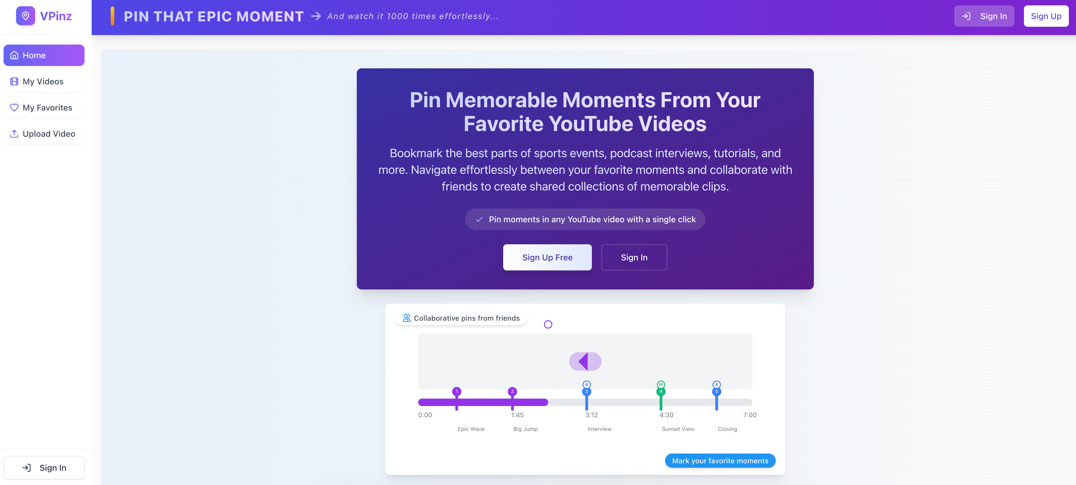 Vpinz是一款视频标记工具,允许用户为长视频内容添加关键时刻标记,方便反复观看和与朋友协作分享。