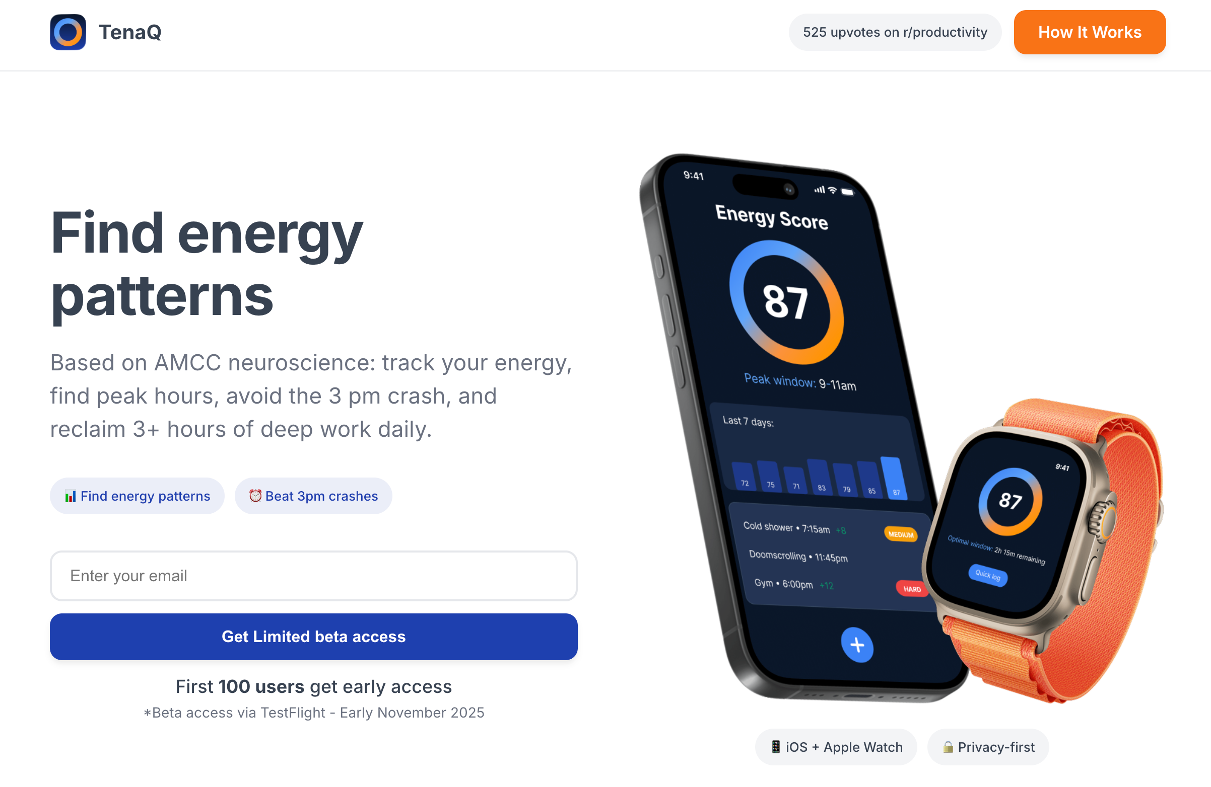 Tenaq是一款能量追踪应用,快速记录每日状态、任务难度,并分析用户的能量模式。