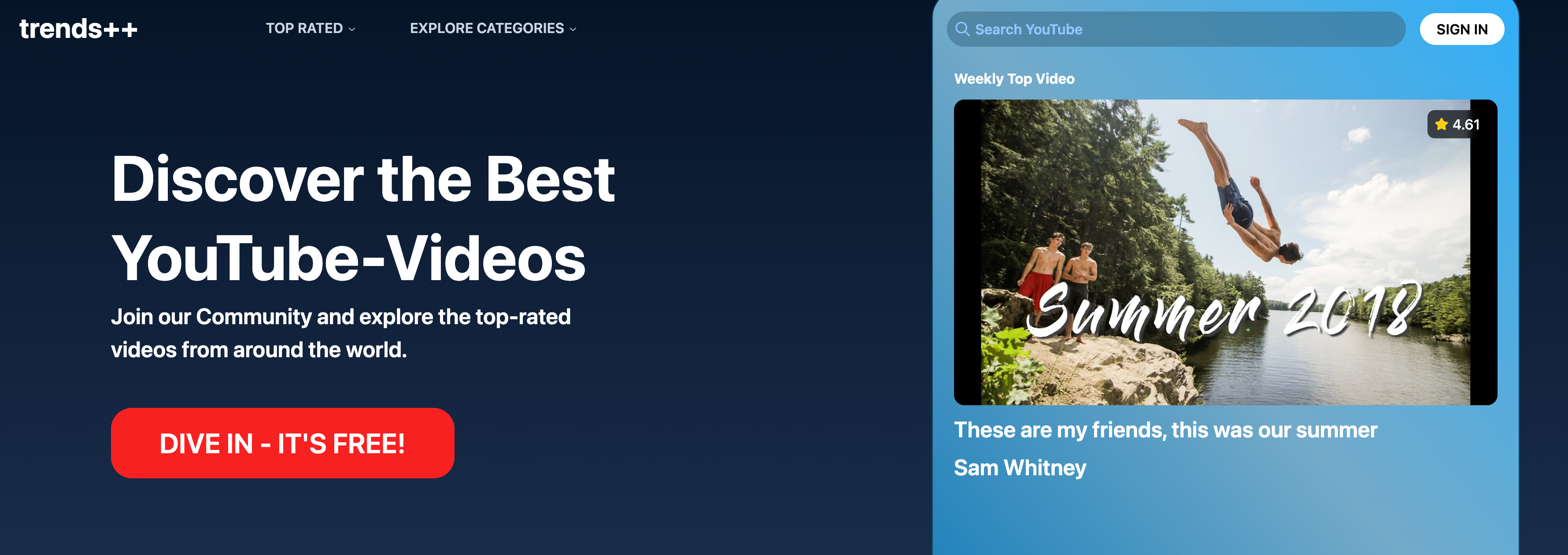 Trends++是一个YouTube视频评价和发现平台,用户可以评分和评论视频、创建观看列表、查看其他用户的热门视频,并发现算法未推荐的优质内容。