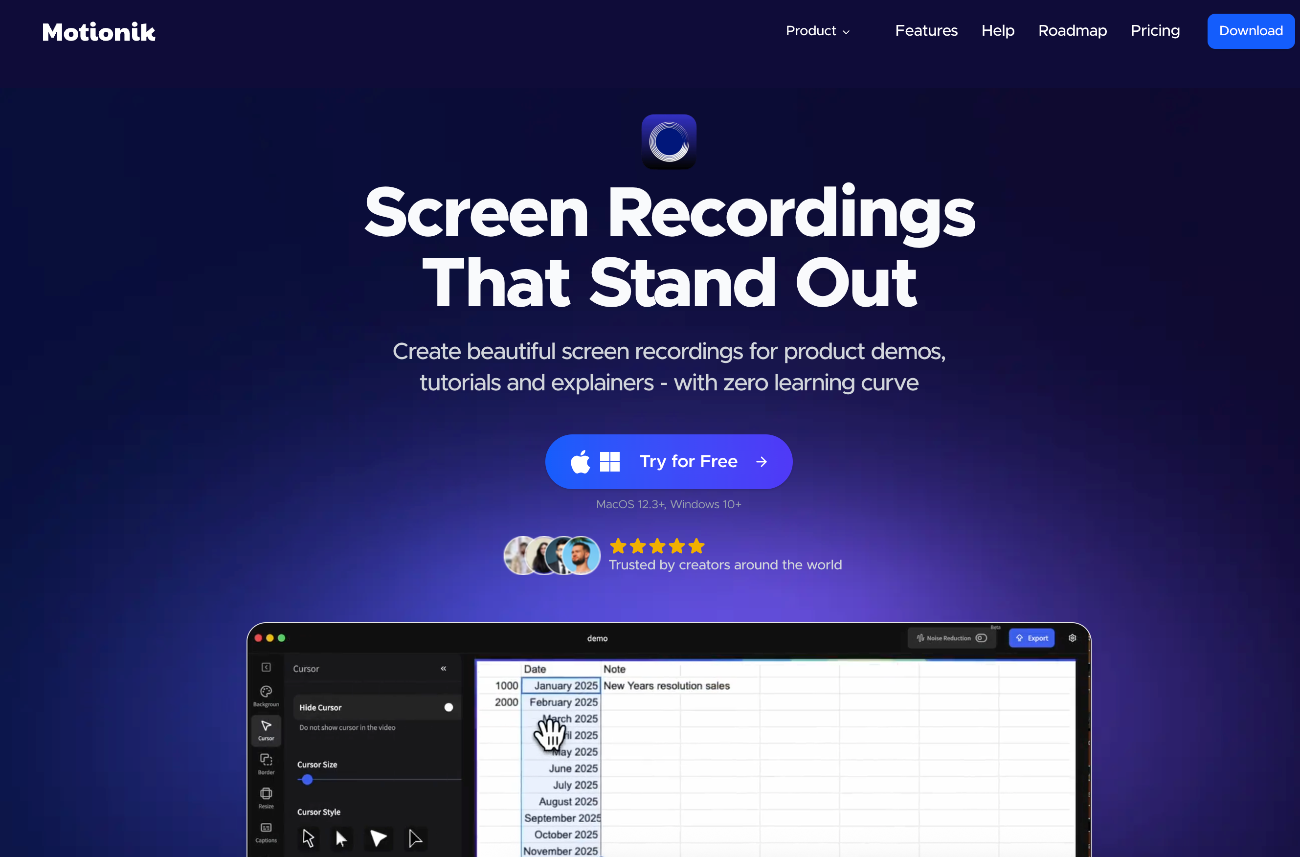Motionik是一款屏幕录制和编辑软件,支持Windows和Mac平台,是Screen Studio的替代品。