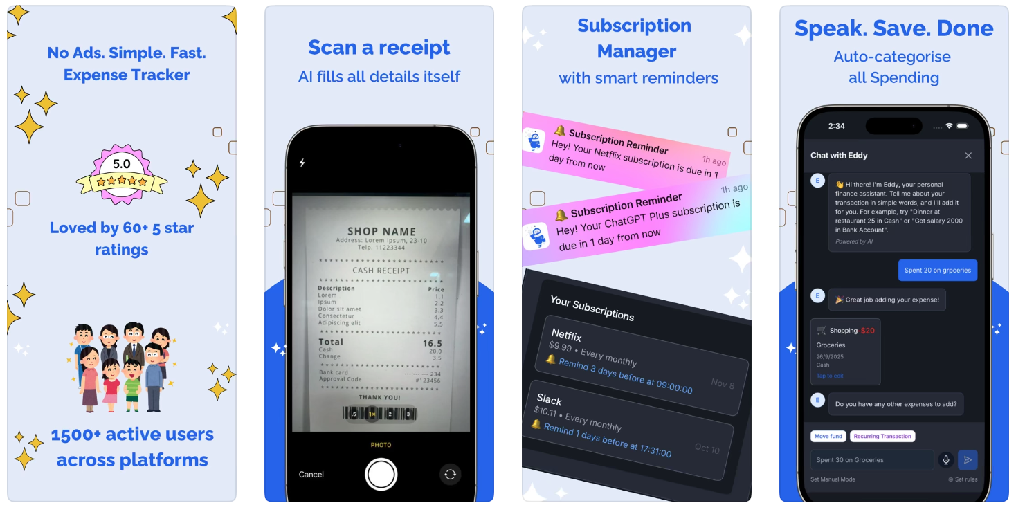 Eddy AI是一款AI驱动的预算规划和开销追踪应用,提供快速的费用记录、可视化分析、AI聊天助手和语音交互功能。