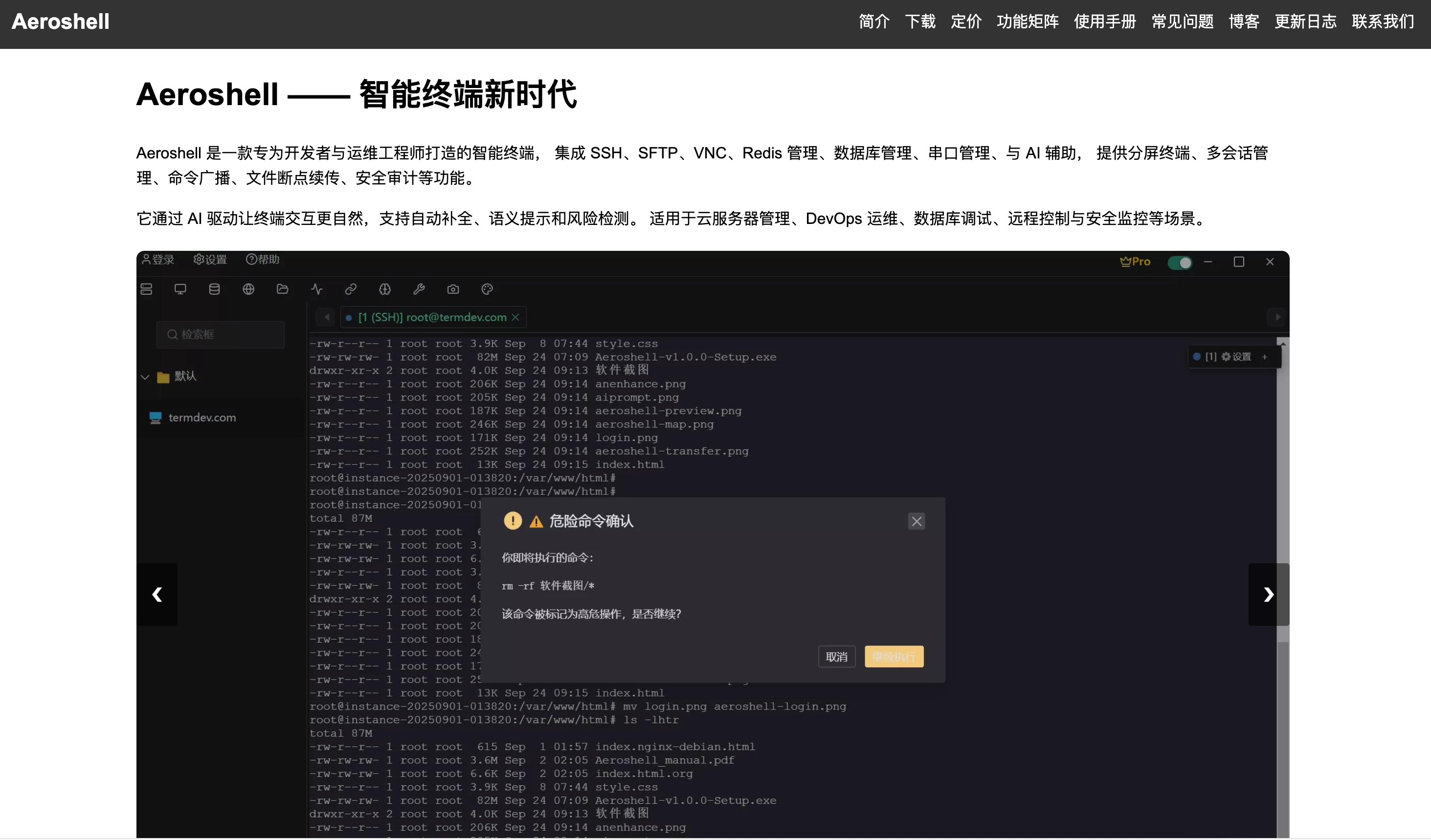 Aeroshell是一款智能终端软件,集成多会话管理、SFTP文件传输、终端增强及AI辅助功能,旨在提高运维和开发效率,目前仅提供Windows版本。
