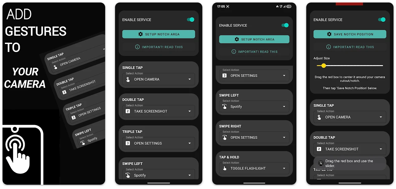 Notch-Touch是一款Android应用,允许用户自定义相机刘海区域的手势操作,提供便捷的触控功能。