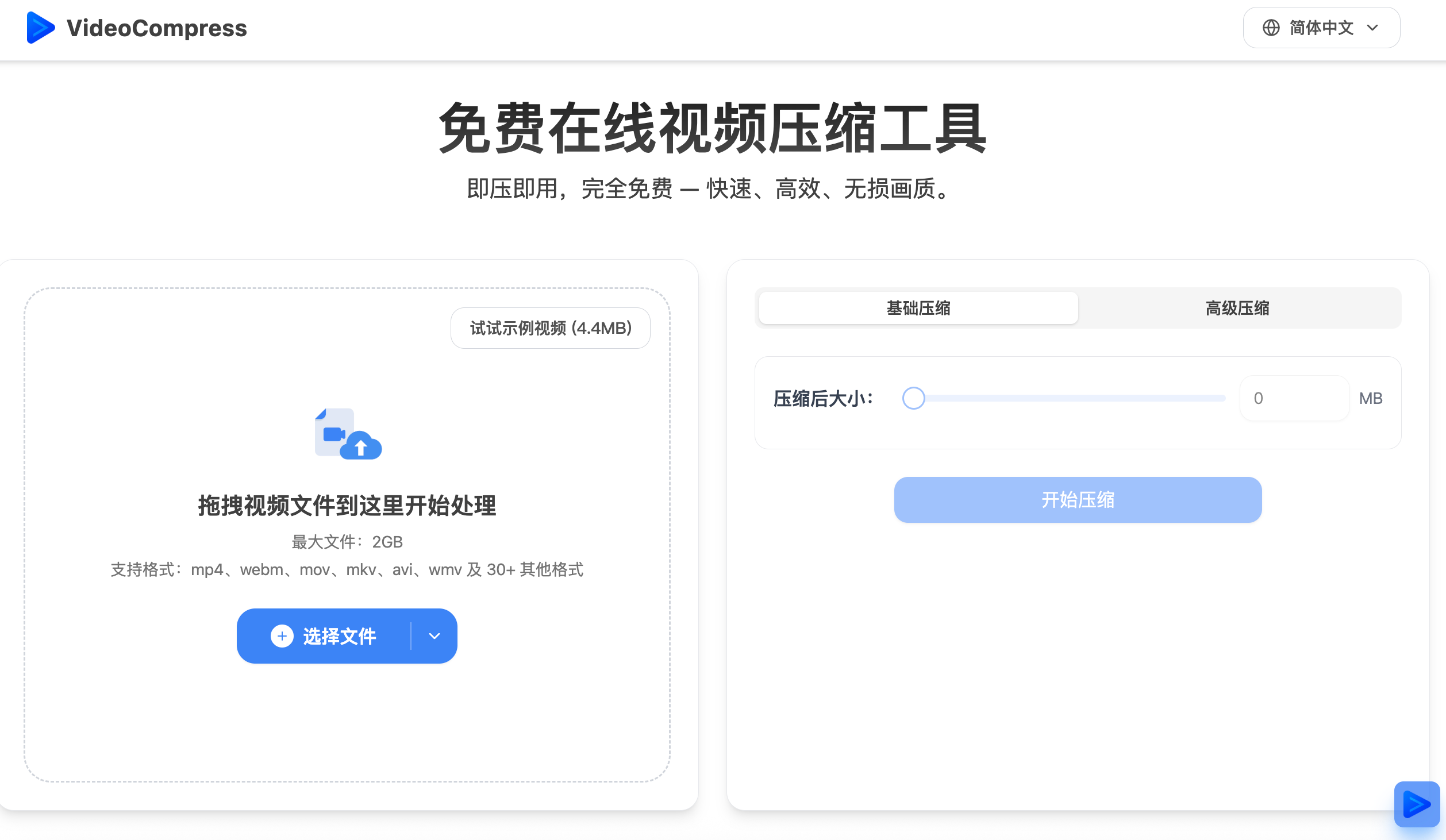 VideoCompress是一款免费在线视频压缩工具,快速压缩视频且无质量损失、限制或水印。
