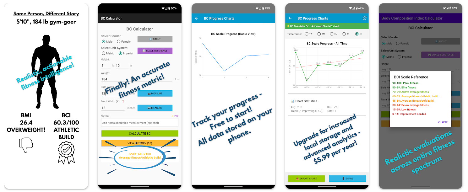 BC Calculator是一款Android应用,通过手机摄像头和信用卡测量运动员的身体成分,提供真实的健身评分,解决BMI不适用于肌肉发达人群的问题。