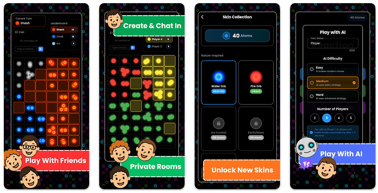 Chain Reaction是一款连锁反应游戏,新增在线模式、AI模式和随机匹配模式。