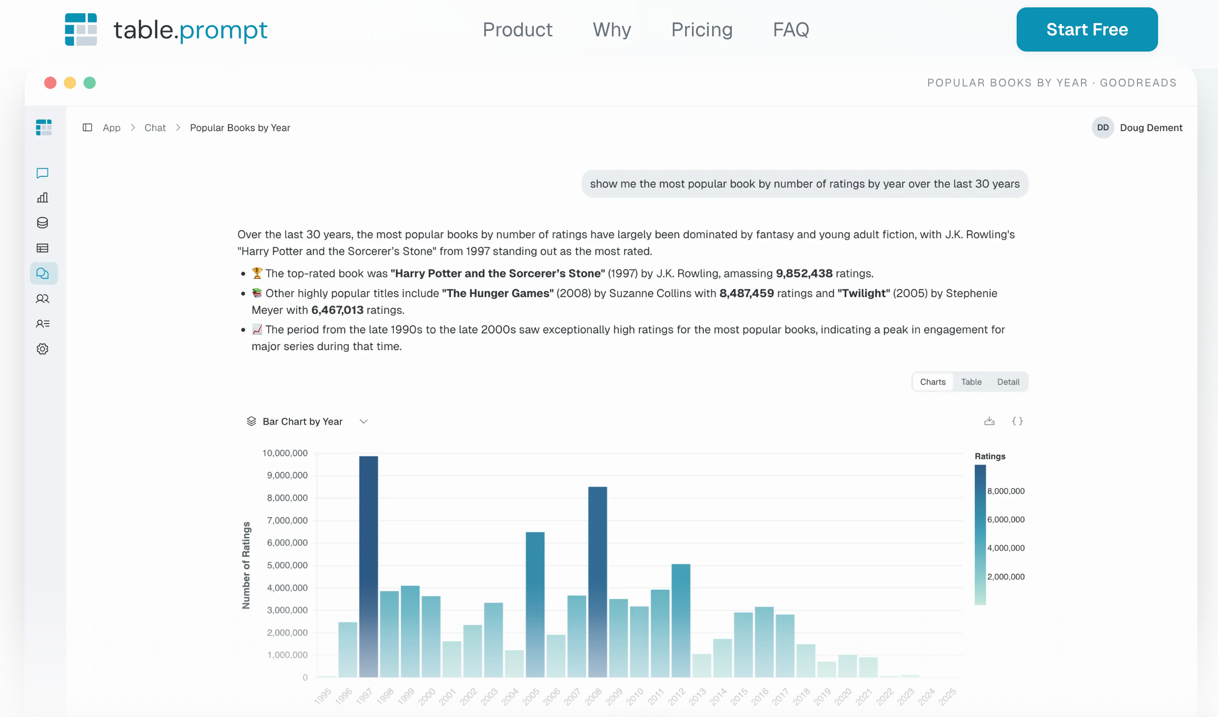 TablePrompt是一款Text-to-SQL软件,为数据团队提供AI驱动的自然语言转SQL和可视化功能,支持快速连接数据仓库并保持数据控制。