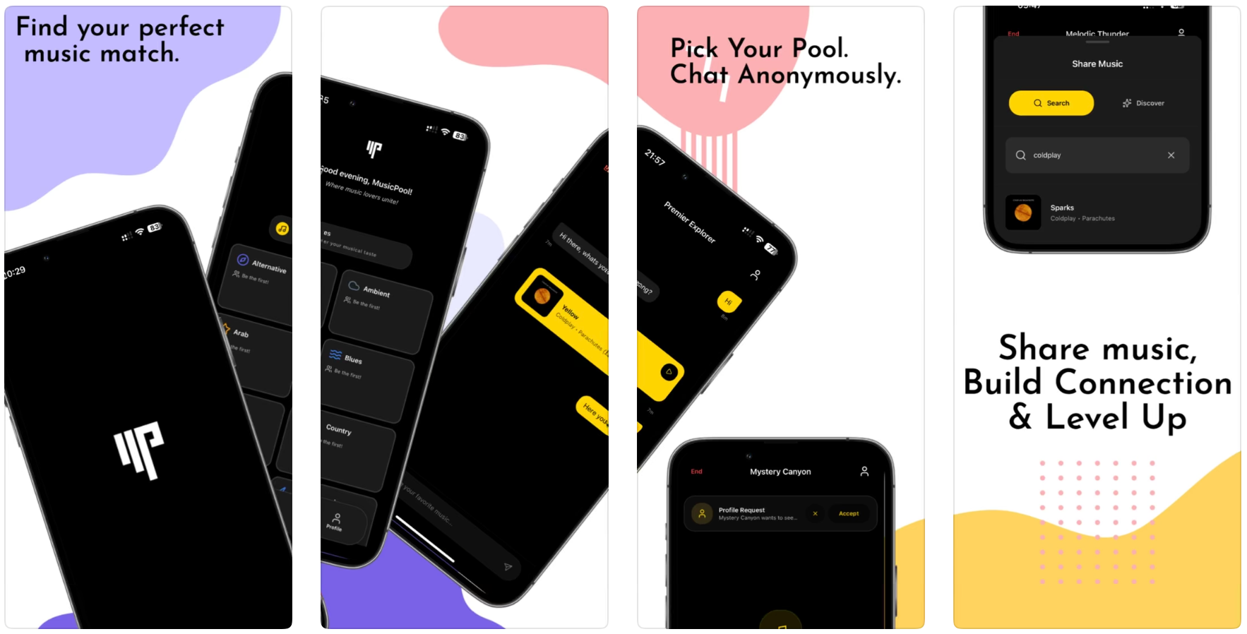 MusicPool是一款连接人们的音乐应用,通过用户的情绪或音乐类型匹配匿名聊天和分享音乐。