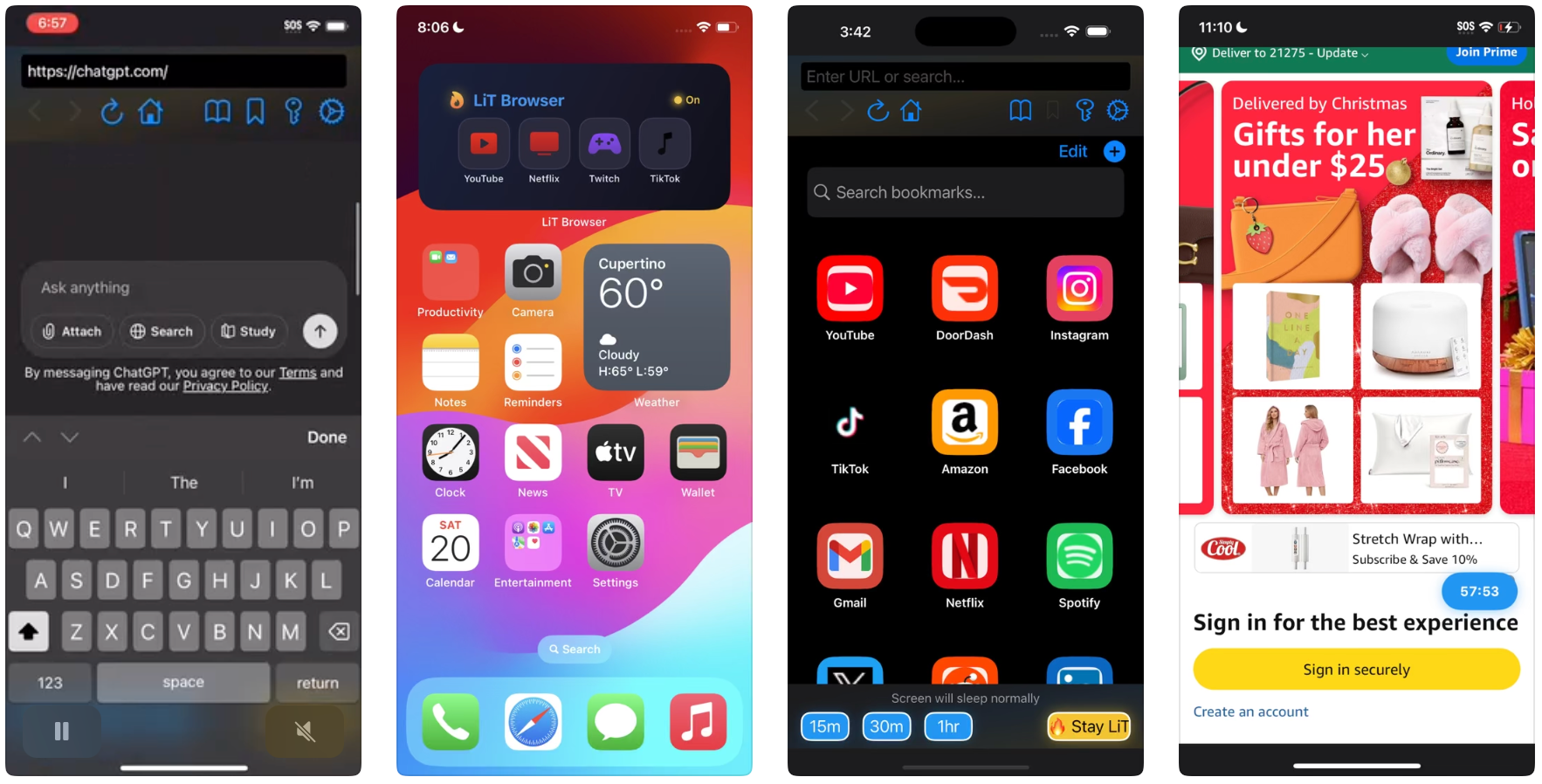 LiT Browser是一款iOS应用,解决屏幕超时问题,帮助用户在阅读、查看食谱和锻炼时保持屏幕常亮。