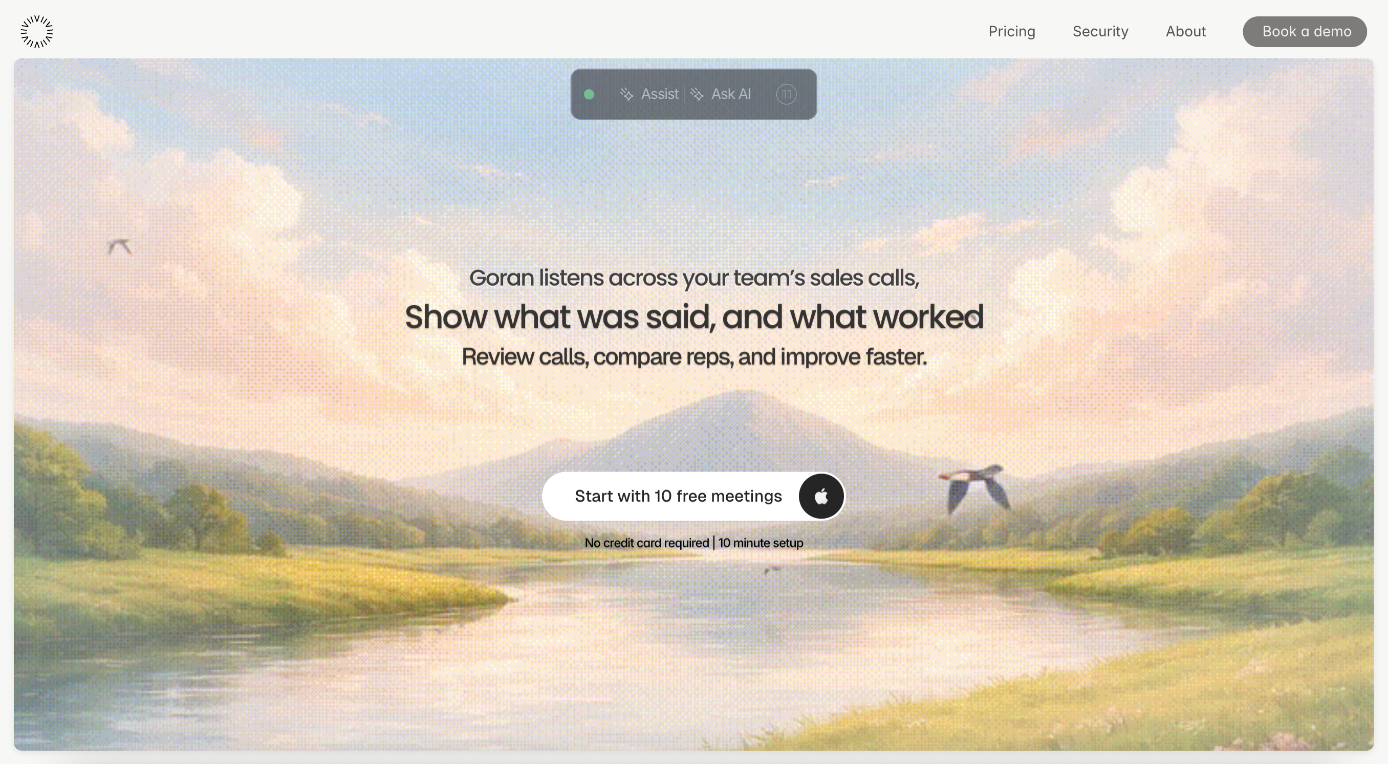 MeetGoran是一款AI销售辅助工具,能够在销售电话中实时指导销售代表,并在通话后向经理展示每个代表的改进需求。
