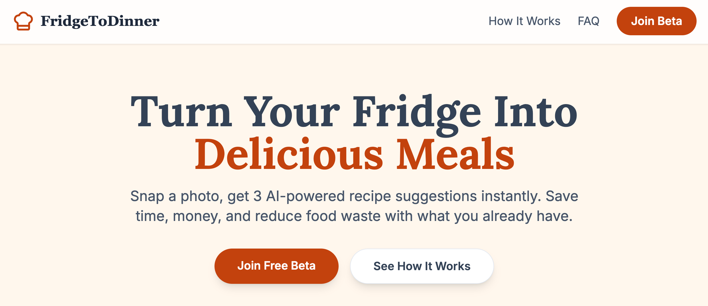 FridgeToDinner是一款食谱推荐应用,通过拍摄冰箱照片,利用AI快速提供3个食谱建议,帮助用户高效利用现有食材。