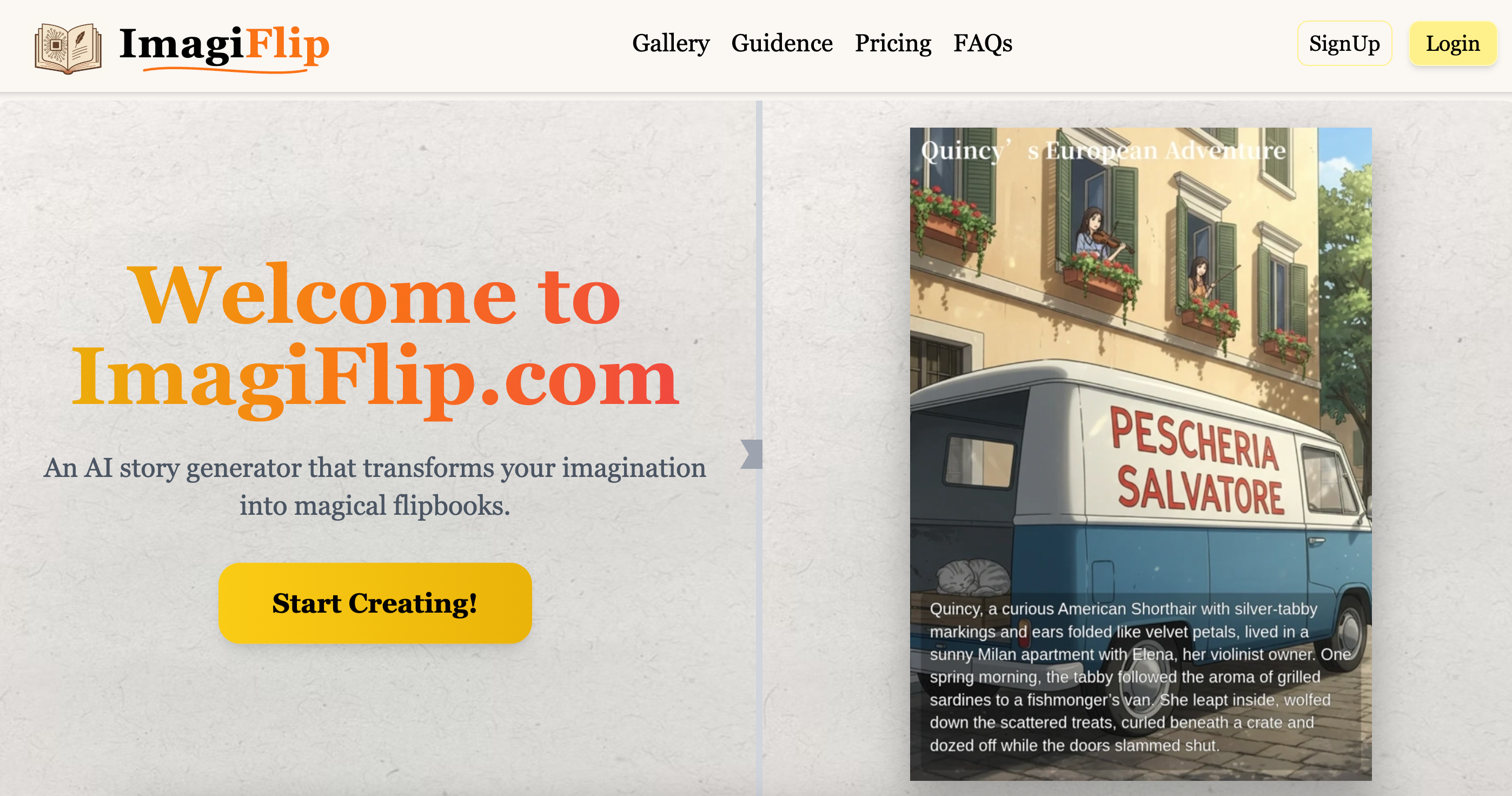 imagiflip是一款AI故事flipbook生成器,用户输入文字后,AI自动生成插图并制作成可分享的flipbook,同时提供写作助手和统一风格的插画。