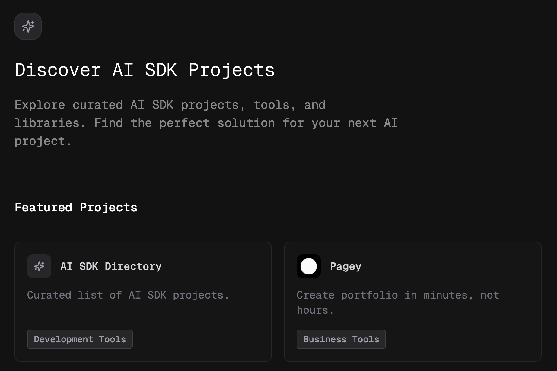 AI SDK Directory是一款AI SDK项目列表工具,为用户提供灵感以便于开发下一个项目。