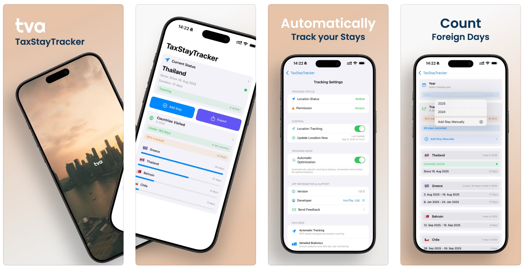 TaxStayTracker是一款iOS应用,自动记录用户在不同国家的天数,帮助解决税务居民身份识别问题,并保持数据本地存储。