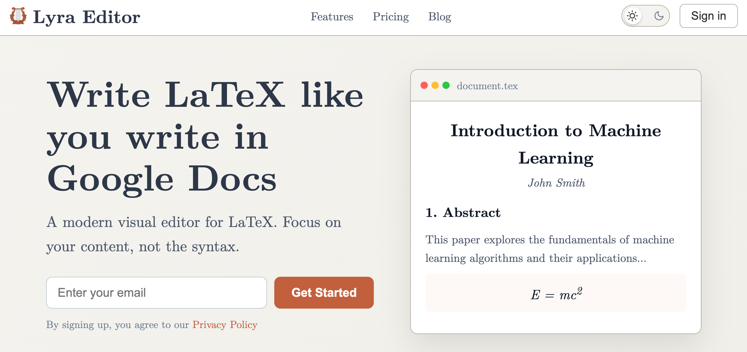 Lyra Editor是一款所见即所得的LaTeX编辑器,提供类似Google Docs的视觉编辑体验,简化LaTeX写作过程。