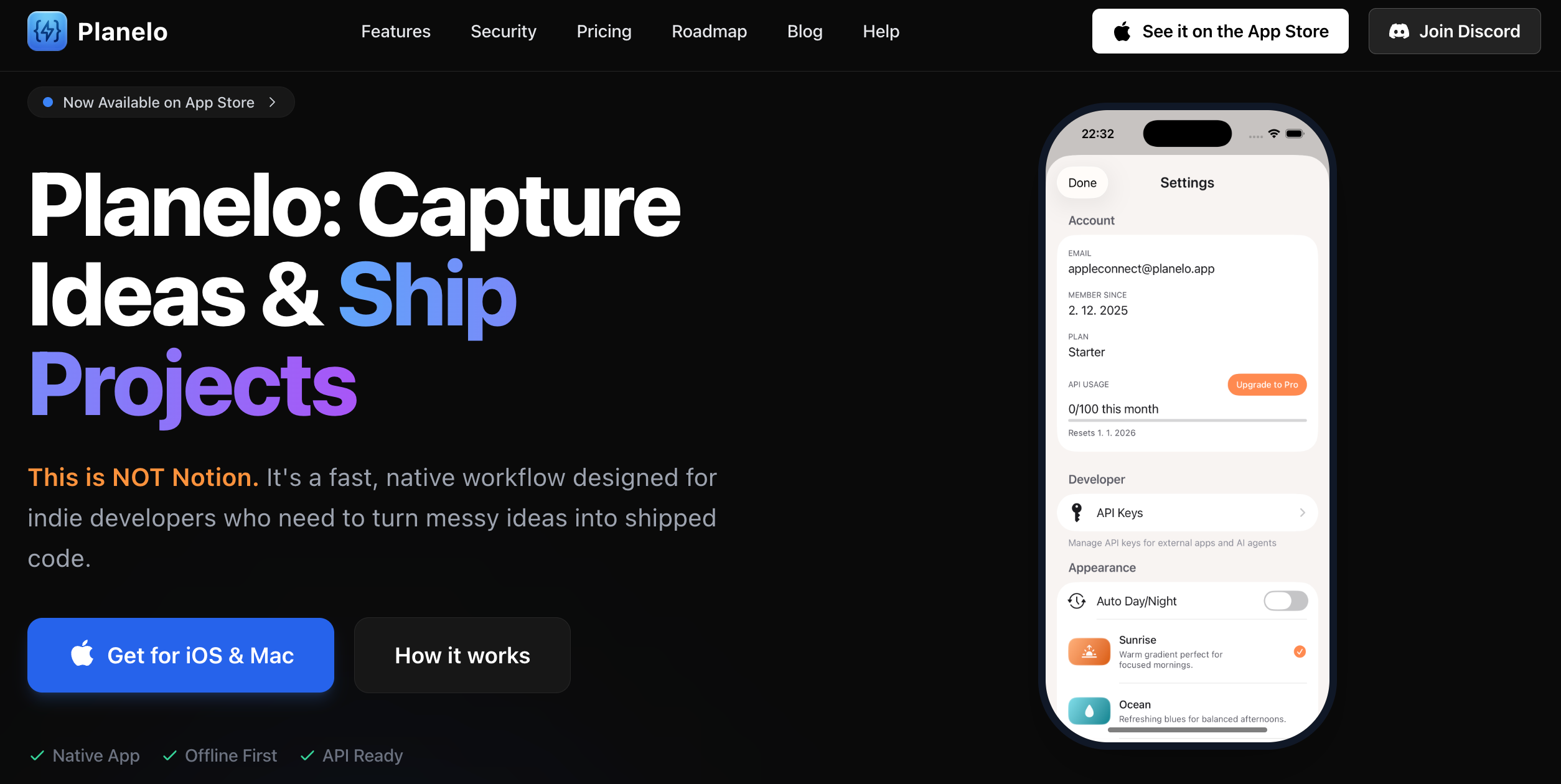 Planelo是一款macOS/iOS软件,项目组织、快速捕捉想法、标签和优先级管理,以及加密同步和API密钥支持。