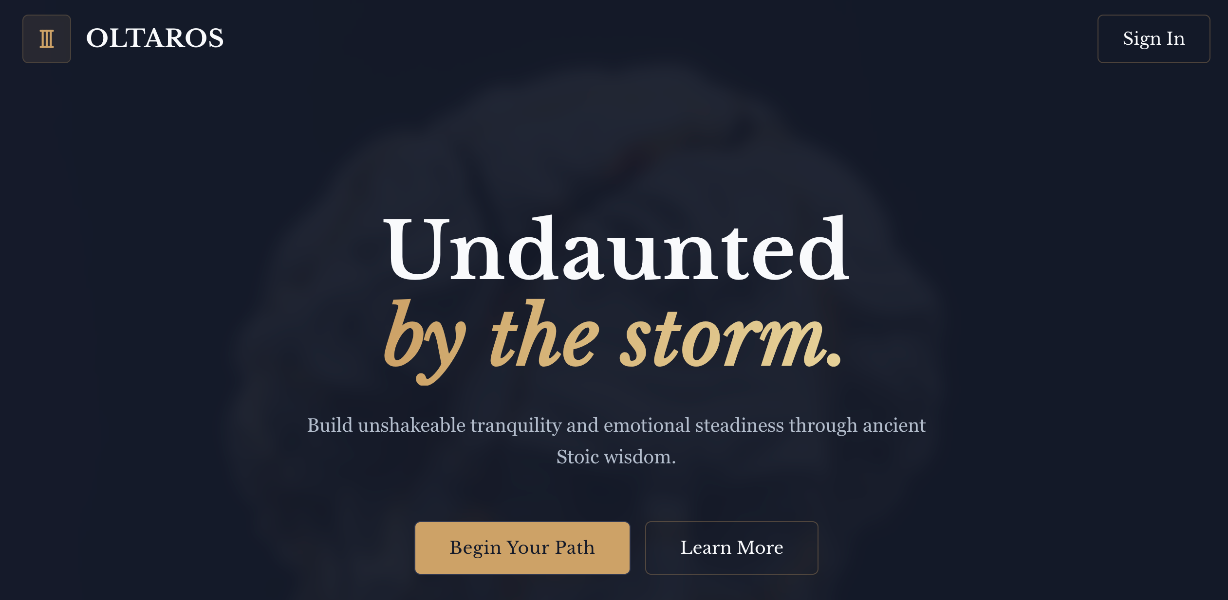 OLTAROS是一款基于斯多葛哲学的心理健康和韧性建设Web应用,提供指导性的心理锻炼工具,帮助用户应对日常生活中的挑战。
