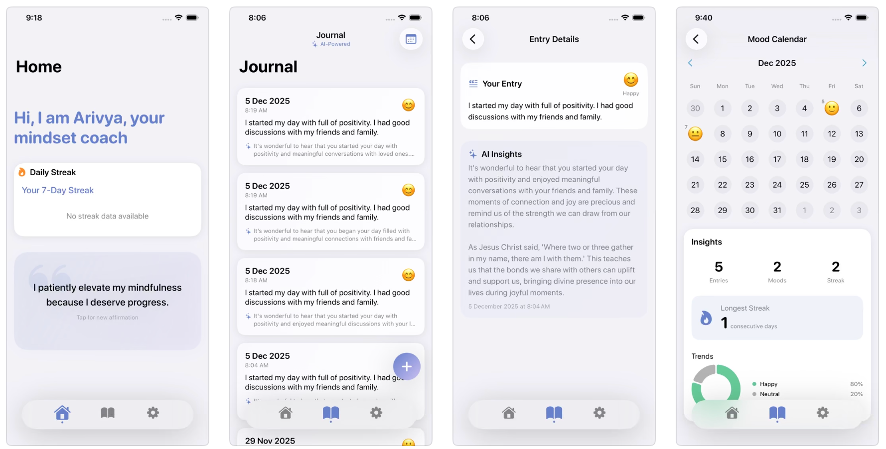 Arivya是一款AI驱动的iOS应用,提供激励和日志记录功能,帮助用户建立积极的日常习惯。