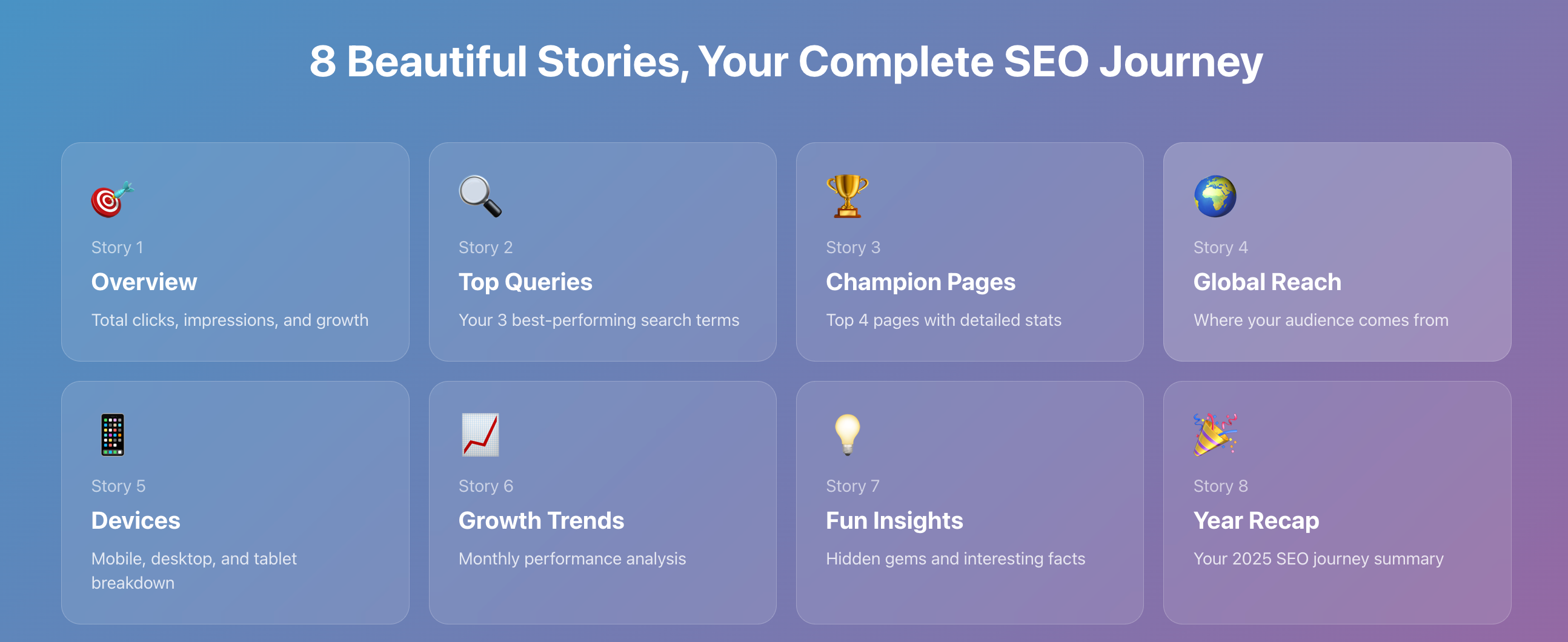 SEOwrap是一款免费的SEO数据可视化工具,将Google Search Console数据以Spotify Wrapped风格展示,便于用户在社交媒体上分享项目成果。