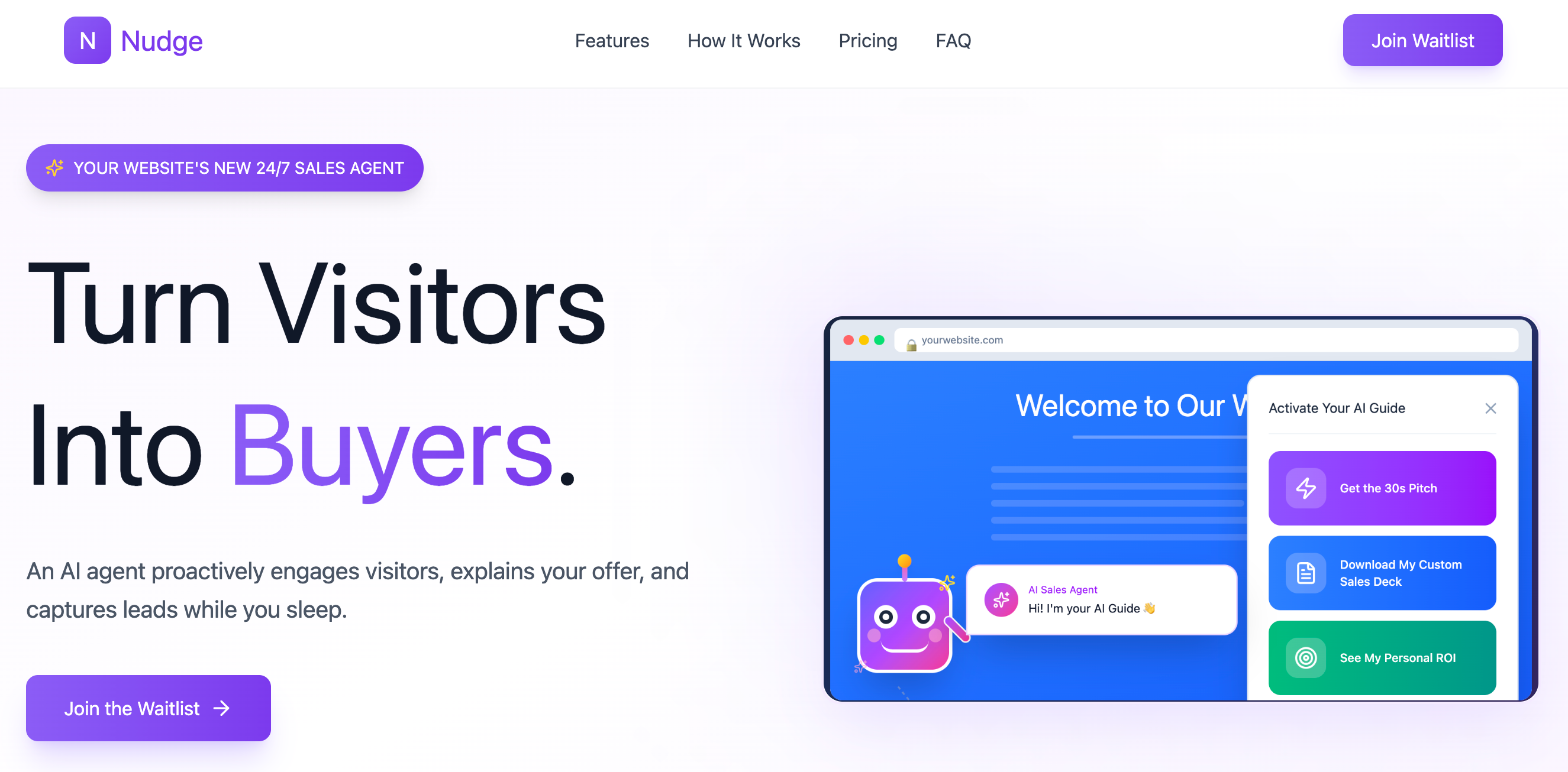 NudgeSite是一款AI代理工具,通过“销售覆盖”主动向用户解释网站内容,以减少用户流失并提升用户体验。