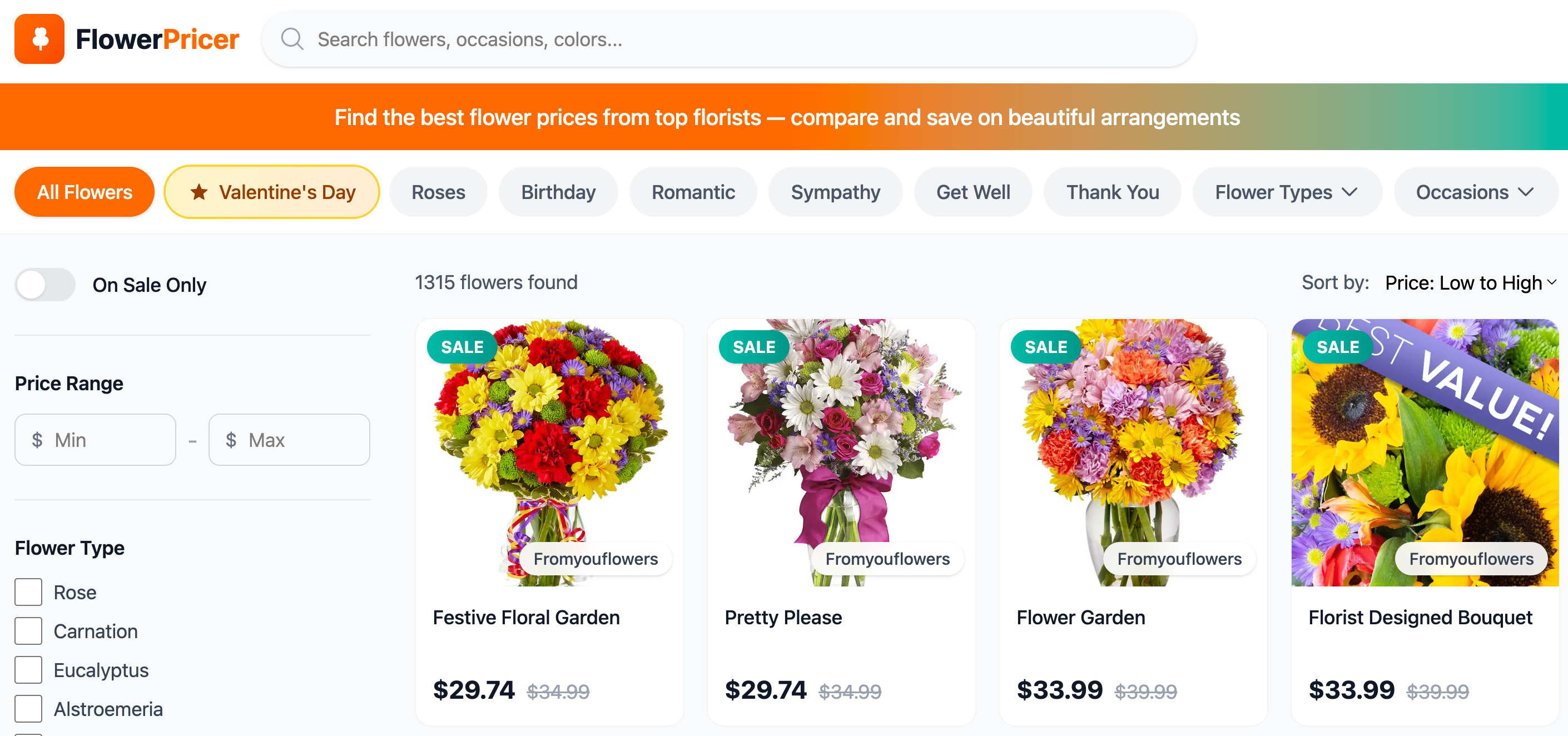FlowerPricer是一款鲜花配送比价应用,利用AI智能分类与筛选,帮助用户快速比较不同鲜花产品价格。