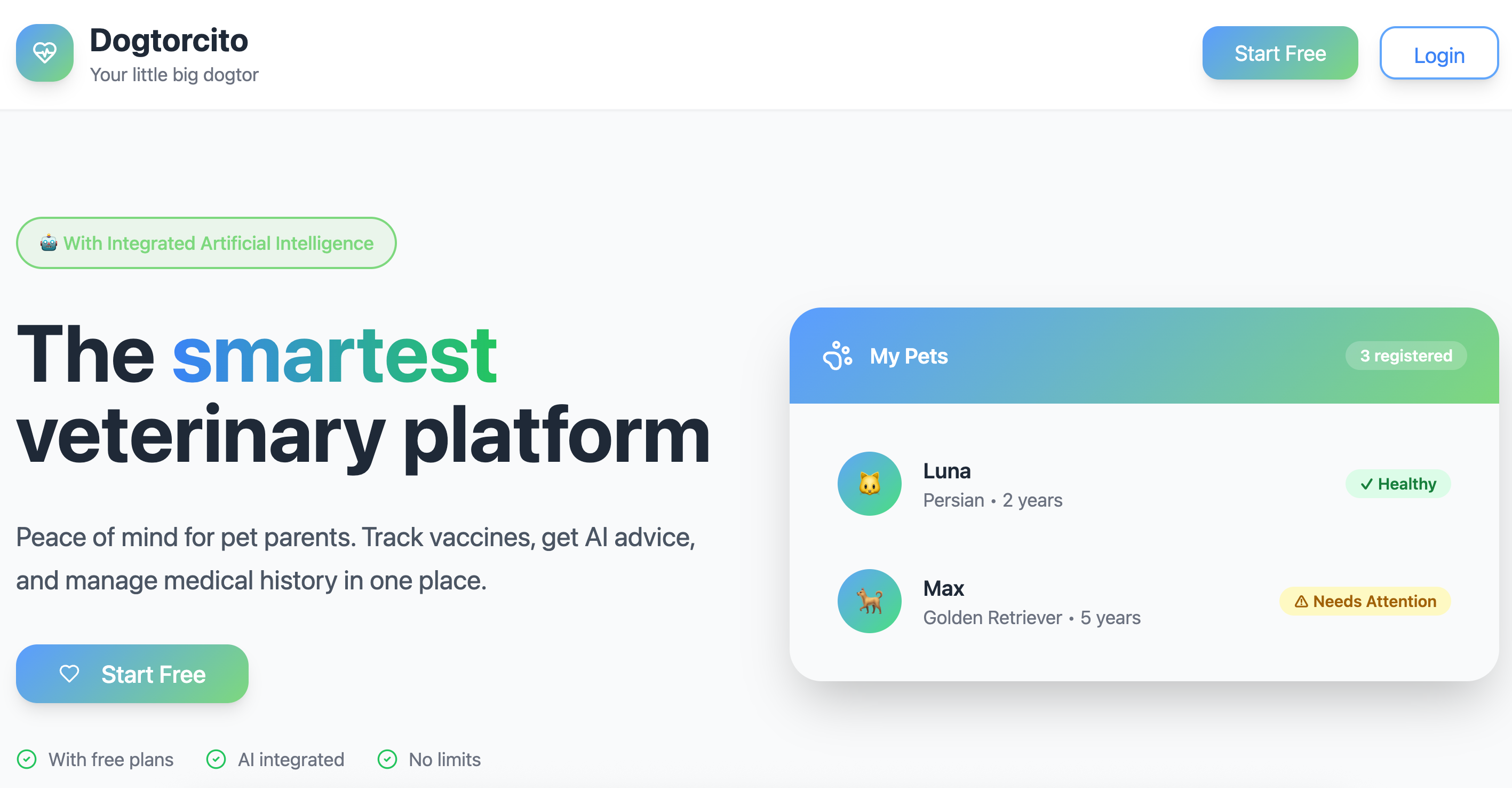 Dogtorcito是一款SaaS Web App,帮助宠物主人记录健康事件、存储病历,并提供AI助手快速查询宠物历史。