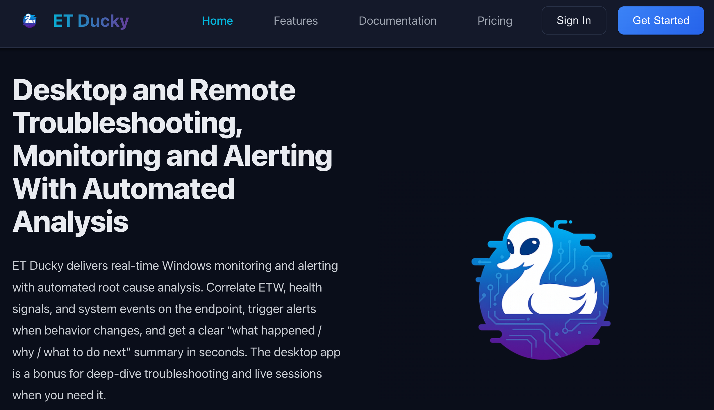 ET Ducky是一款Windows操作系统故障排除应用,利用事件追踪和AI分析进行内核级事件关联,提供免费和付费API密钥选项。