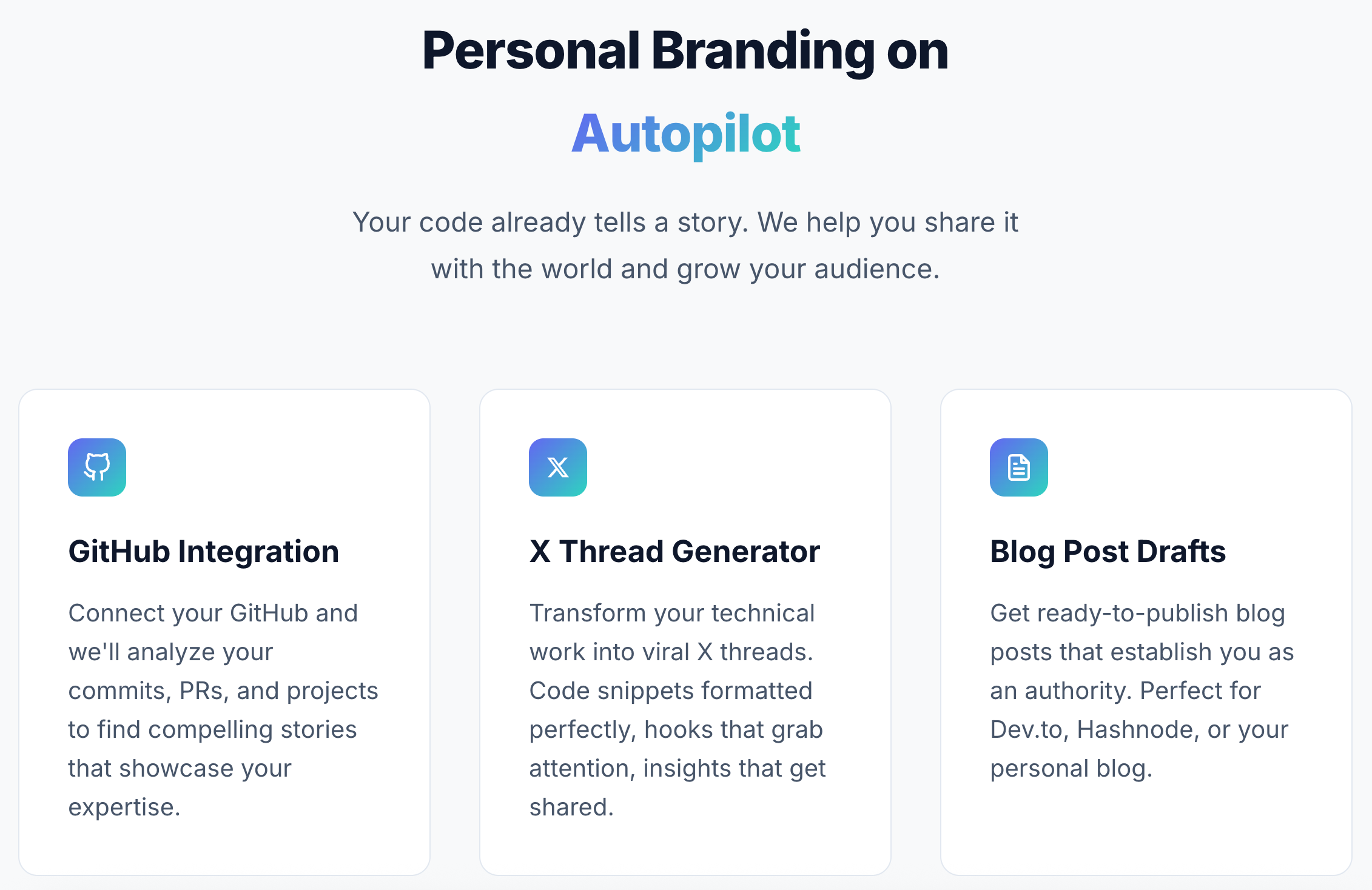 GrowKit是一款开发者工具,将GitHub活动(如提交、PR、项目)转化为博客草稿、X推文等内容,帮助开发者更轻松地分享代码故事,节省写作时间。