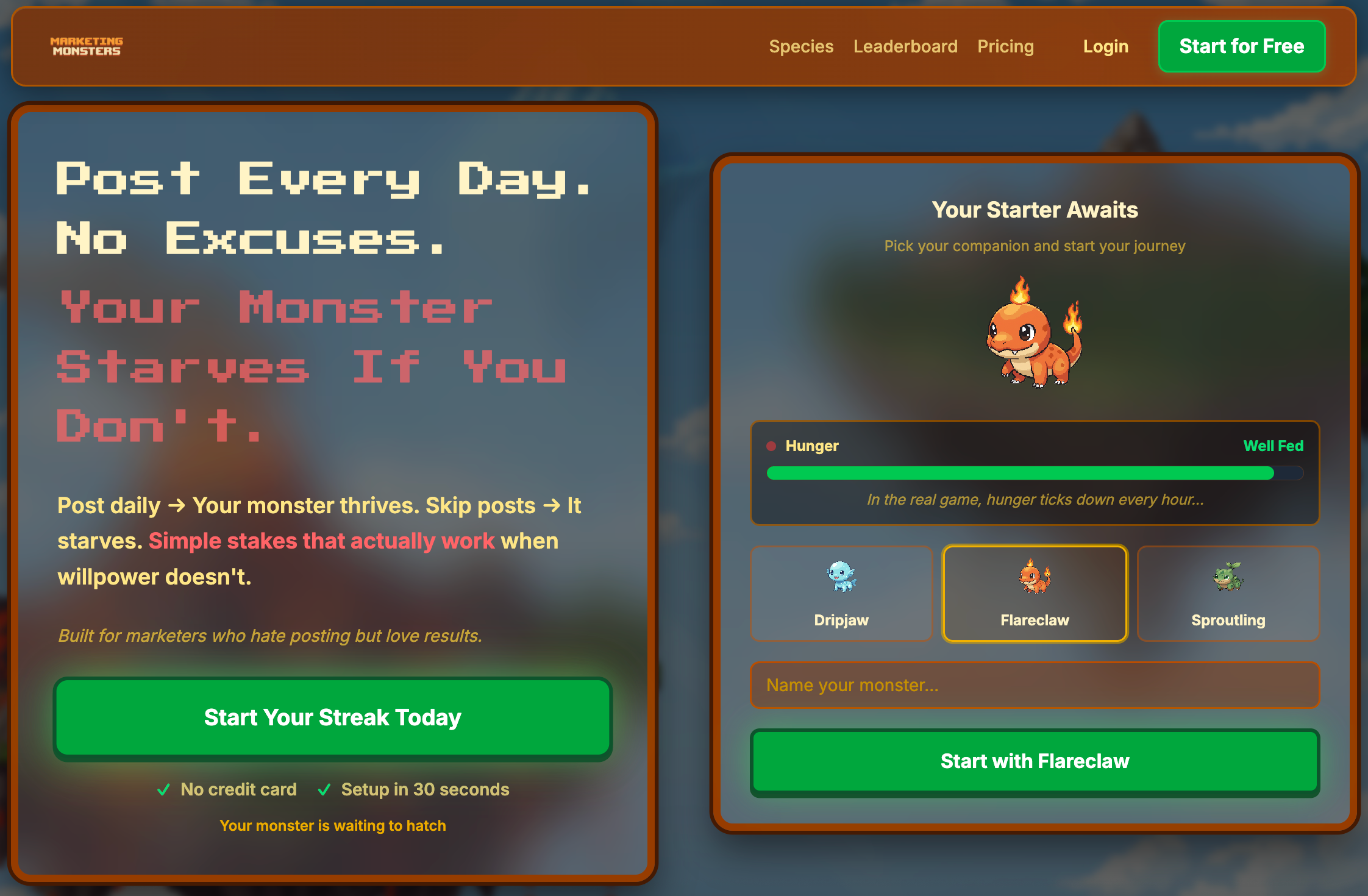 Marketing Monsters是一款游戏化的效率应用,通过记录营销活动来饲养虚拟怪兽,帮助内容创作者和营销人员保持营销一致性,并提供AI驱动的帖子灵感等功能。