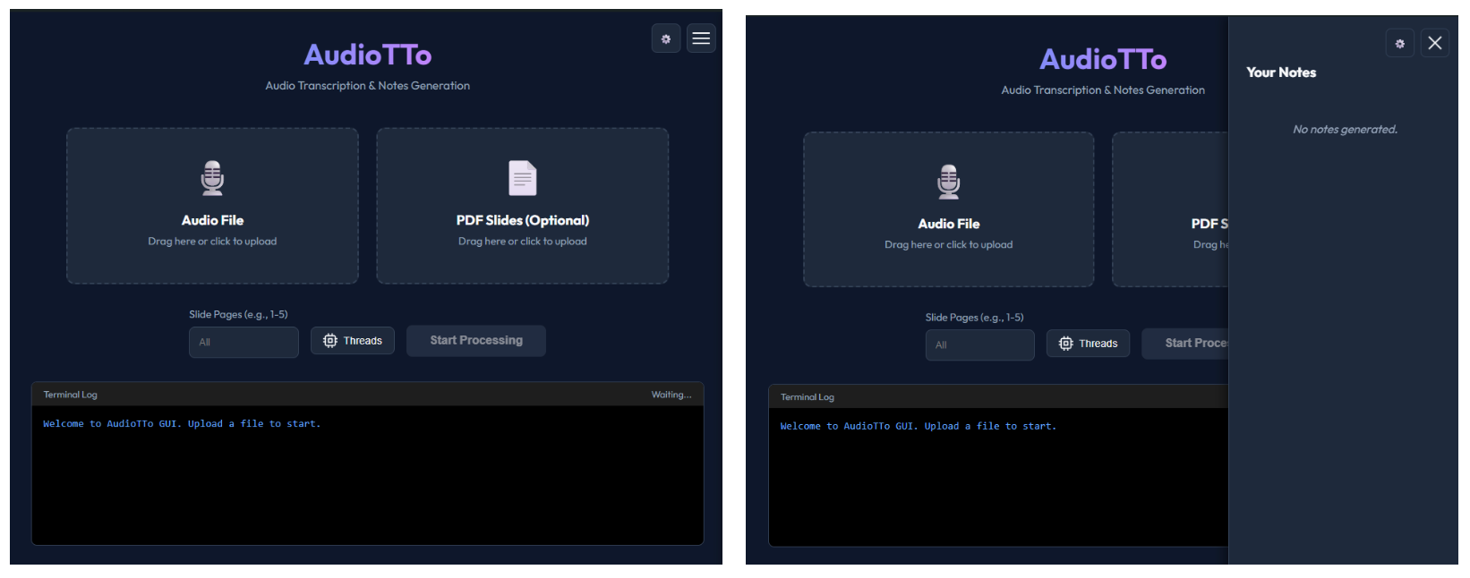 Audiotto是一款自动化大学笔记生成工具,将录音转换为PDF格式的大学笔记,支持多语言,提供LaTeX源文件,且支持PDF幻灯片上传,使用Whisper进行本地音频转录。