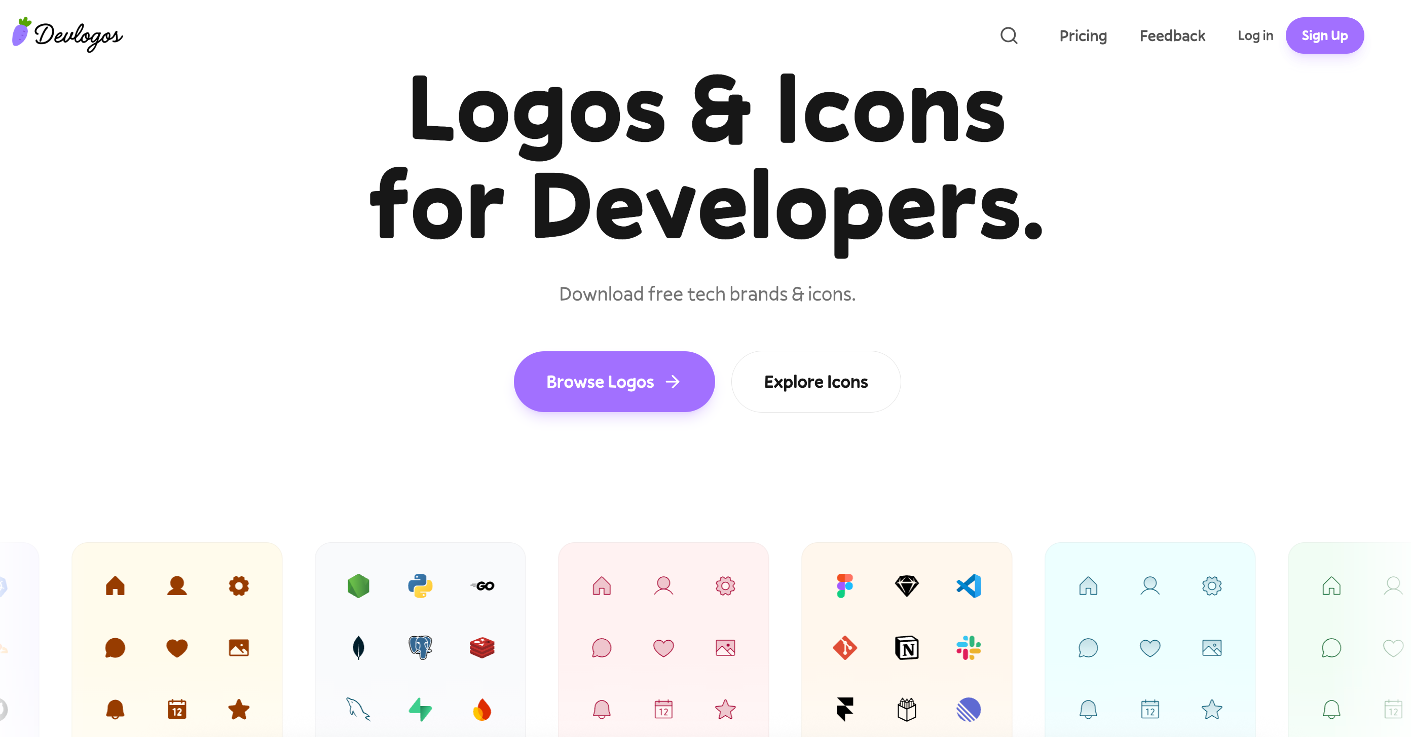 DevLogos是一个开发者工具网站,提供免费的透明技术Logo SVG文件和UI图标。