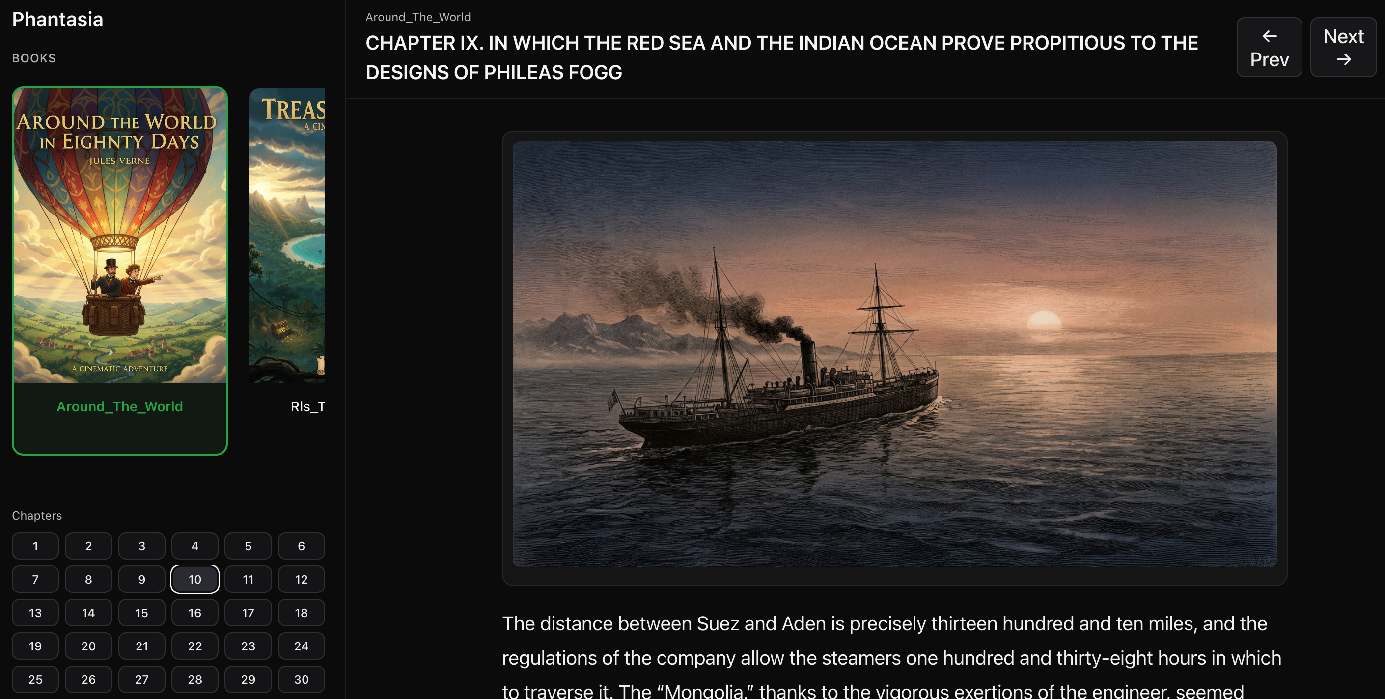 Phantasia 是一款基于浏览器的 EPUB 阅读器,使用 AI 自动为书中的场景生成插图,旨在增强阅读体验。
