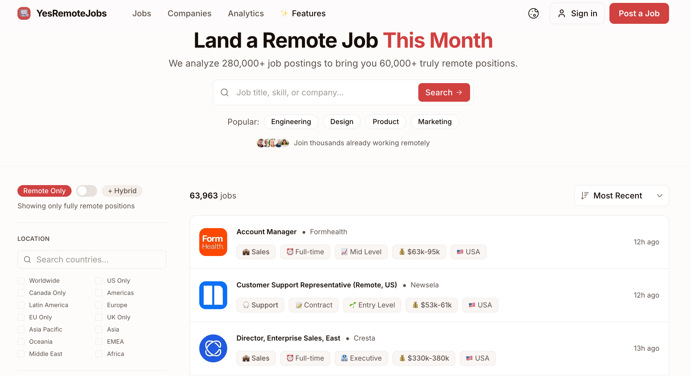 YesRemoteJobs是一个远程工作招聘平台。