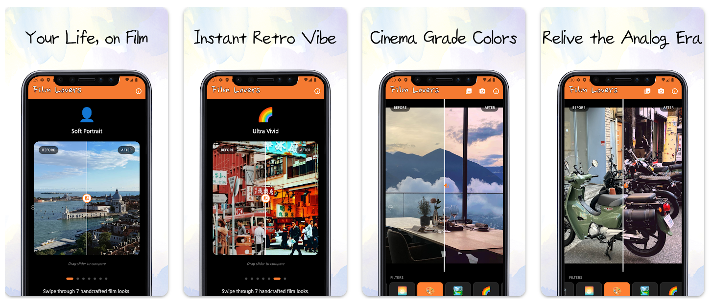 Film Lovers是一款Android应用,提供简单的模拟胶片拍摄体验,具备实时胶片风格渲染、梦幻辉光效果和可选日期戳,设计上无需编辑。