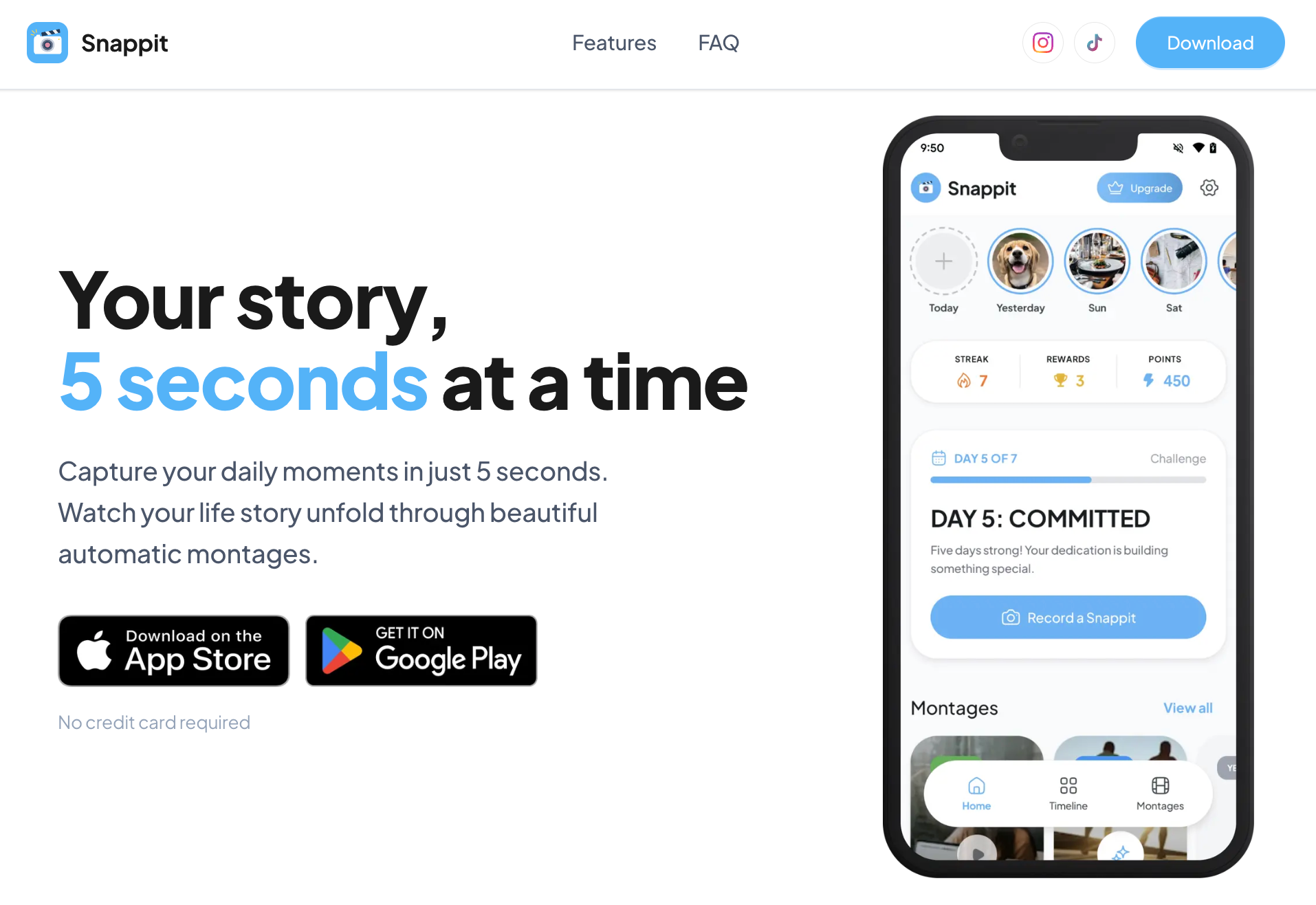 Snappit是一款注重隐私的视频日记应用,每天录制5秒视频,自动生成每周、每月和每年的蒙太奇,无需账户和云端上传。