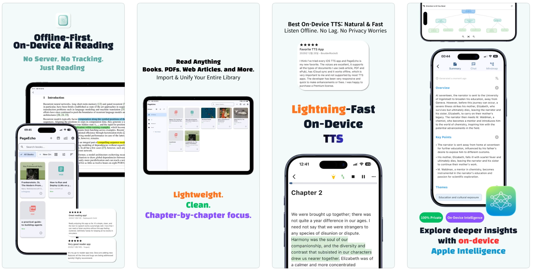 PageEcho是一款iOS平台的离线优先AI电子书阅读器,支持高质量本地TTS、设备端翻译和AI功能,注重用户隐私。
